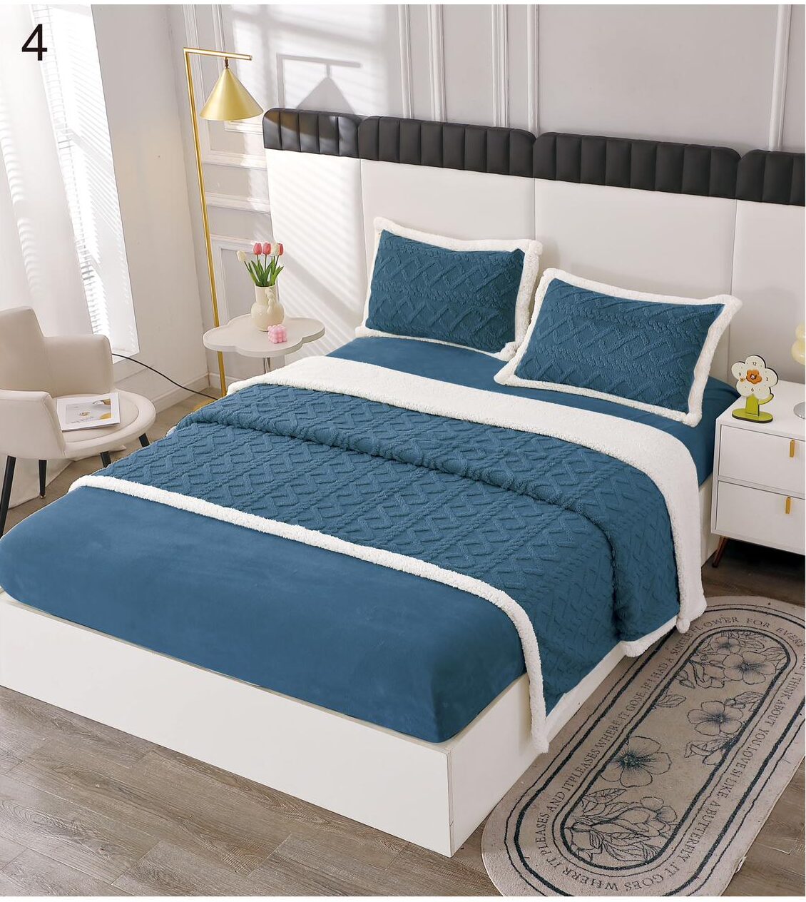 Quilted Cotton Quilt With 4 Pillowcases Set contains:– blanket 230x250cm- two pillowcases 60x80cm- two pillowcases 55x55cmAbout the material:Quilted cotton has a dense texture and is pleasant to the touch. It is a delicate material, but resistant and easy to maintain.It is perfect both for hot summer days and for colder days.Maintenance instructions:– wash at a maximum of 30°C automatically- no chemical bleaches are used- iron at maximum 130°C- it is recommended to wash before the first use for proper hygiene.- drying in the sun is not recommended.Packaging method:Clear plastic case with handles, perfect for gift giving.Product images are for presentation purposes and there may be slight differences in shade due to your phone or monitor settings.Dimensions may vary by +/-5%.