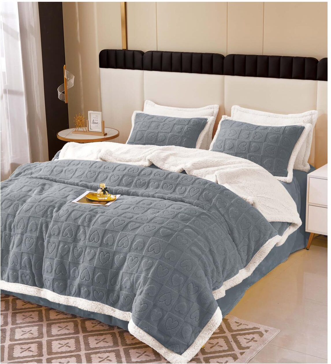 6-piece double bed set.The material from which the underwear is made is of superior quality with a thick fabric, fine texture, very pleasant to the touch and comfortable.The product does not discolor if the maintenance instructions are followed.The set comes packed in a plastic case.Material thickness: 140 gr/m2Material density: 145 TCMaterial composition: 100% fineSet weight: 3 kgThe set contains: