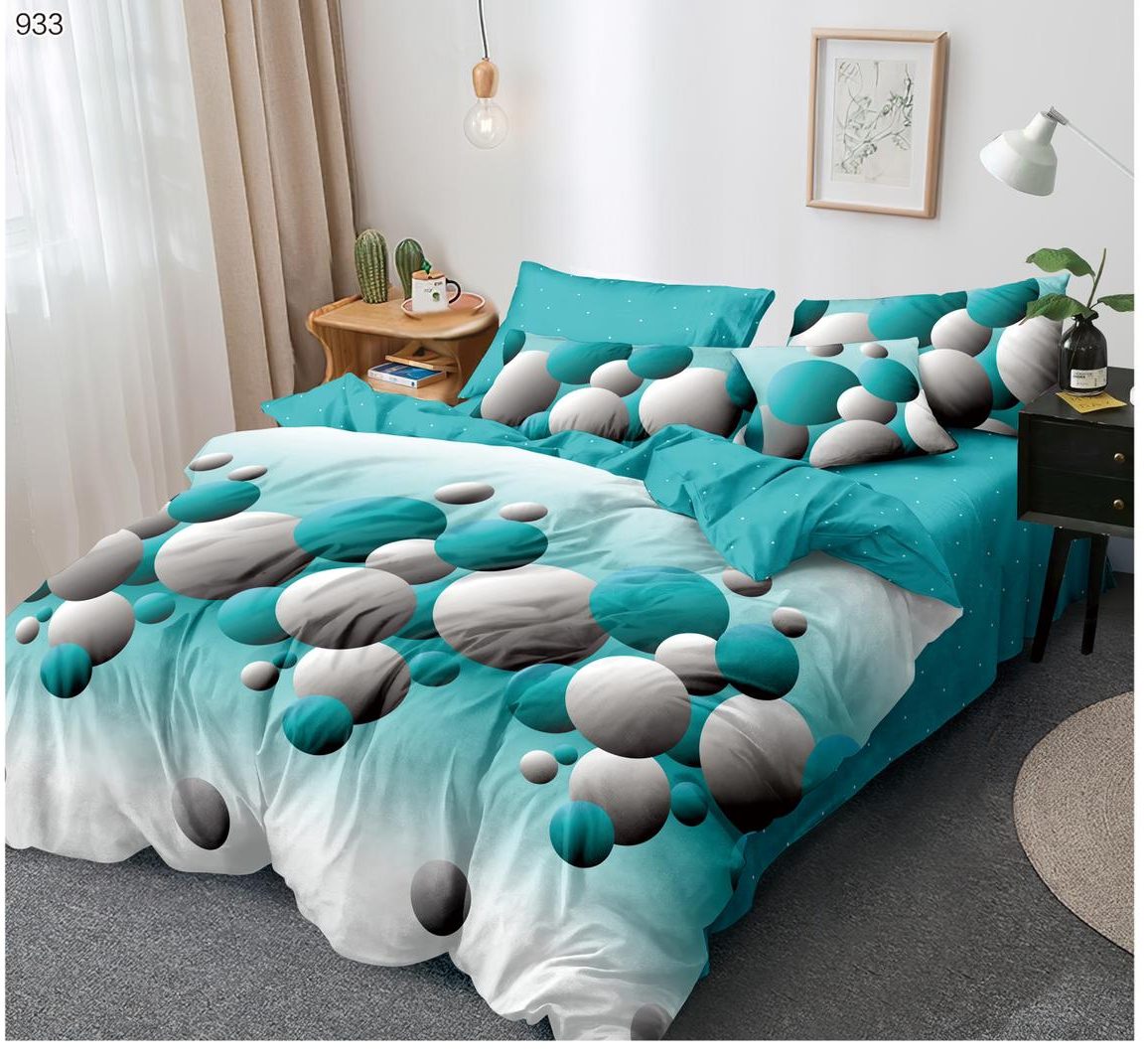 Home Finet bed linen Double bed linen, fine, 6 pieces, 2 people, blue circles, Super Elegant Pucioasa