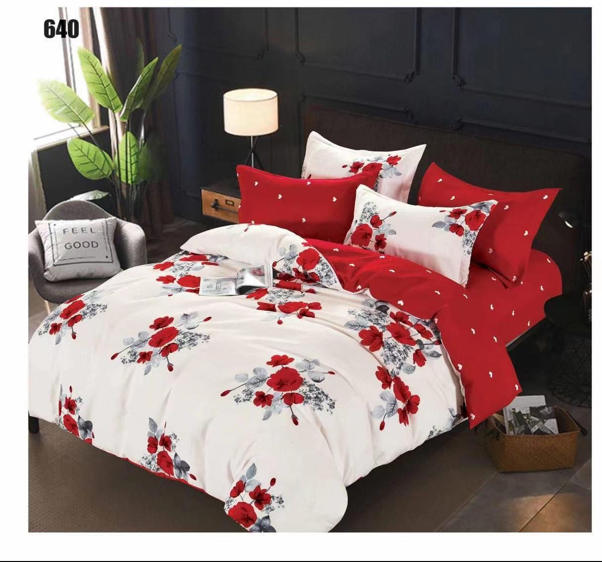 Home Finet bed linen Double bed linen, fine, 6 pieces, 2 persons, red rose bouquet, Super Elegant Pucioasa