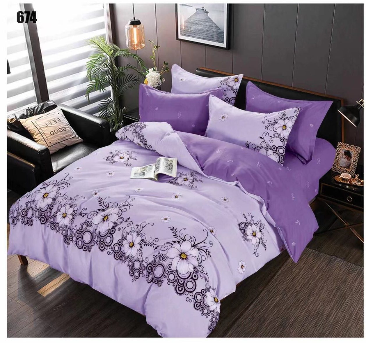 Underwear finet double bed, gray/white. Bed set for two people with 6 pieces.