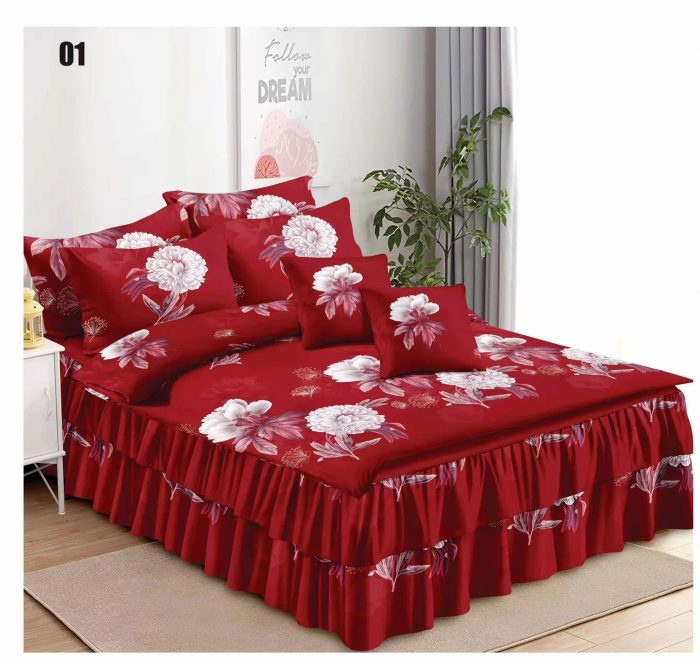 On the bottom of the bedspread, you have placed the superb frills, which give these models elegance and sophistication.The pillowcases close with a flap (stitched).The bed sheet has an elastic on each corner that is attached under the mattress, in order not to allow the sheetto slide off the bed.Packaging method: bag with handles, being ideal for a gift.