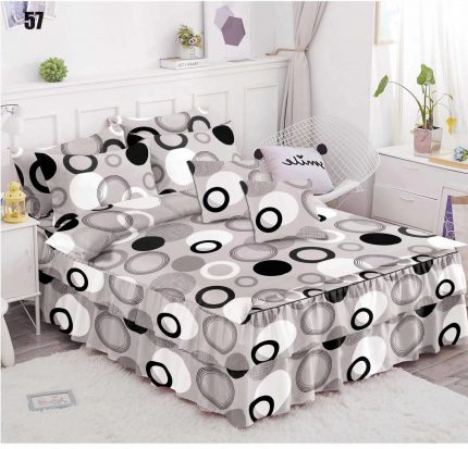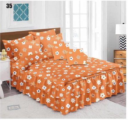 On the bottom of the bedspread, you have placed the superb frills, which give these models elegance and sophistication.The pillowcases close with a flap (stitched).The bed sheet has an elastic on each corner that is attached under the mattress, in order not to allow the sheetto slide off the bed.Packaging method: bag with handles, being ideal for a gift.