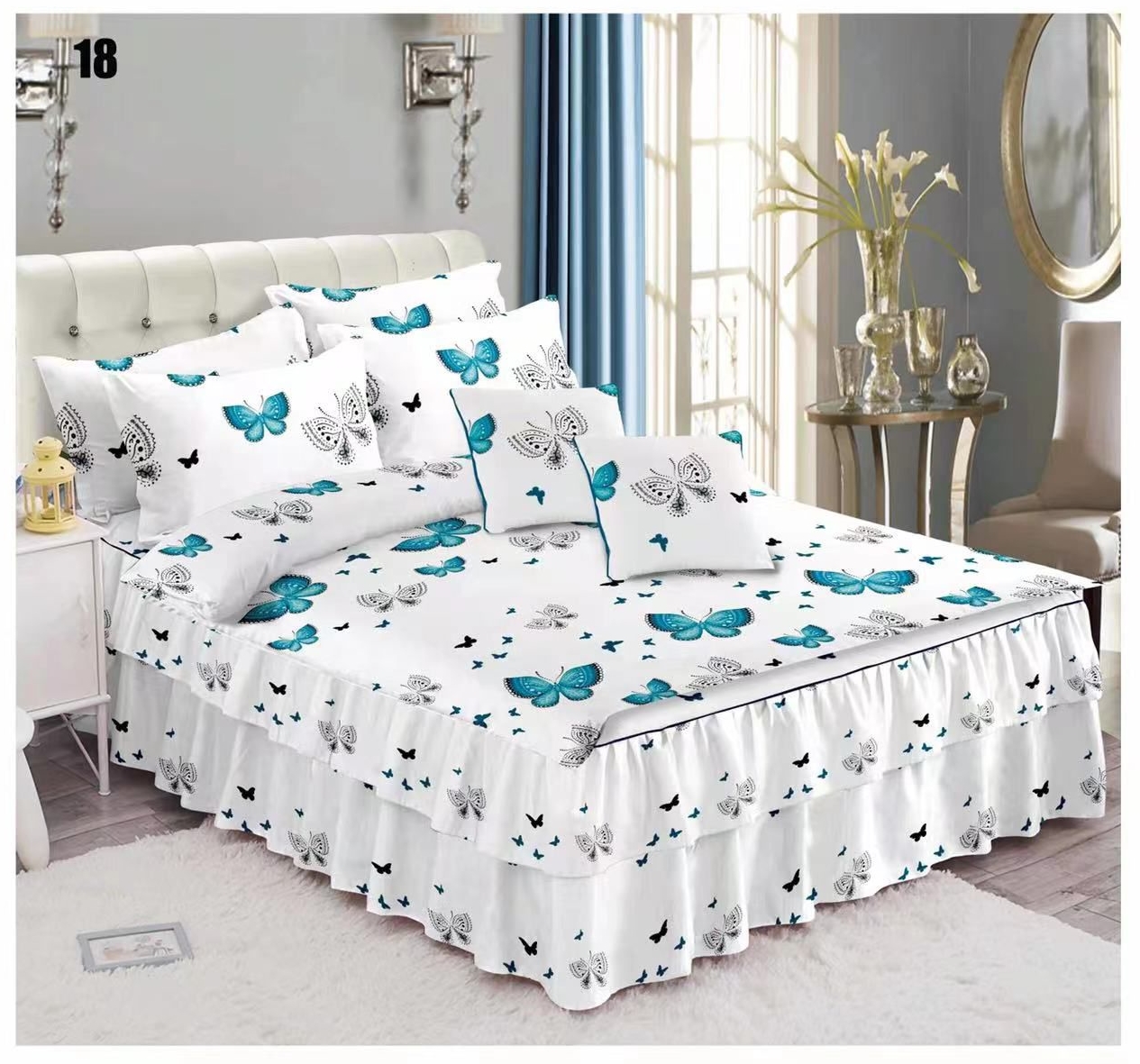 Home Bed Linen with Frills Finet underwear with turquoise butterfly ruffles, Super Elegant Pucioasa