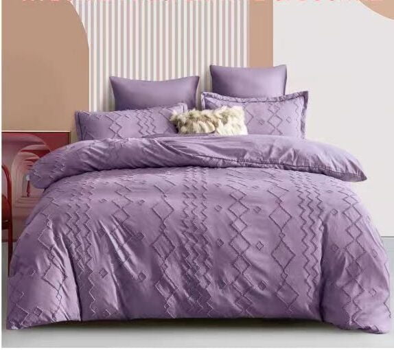 Quilted Cotton Quilt With 4 Pillowcases Set contains:– blanket 230x250cm- two pillowcases 60x80cm- two pillowcases 55x55cmAbout the material:Quilted cotton has a dense texture and is pleasant to the touch. It is a delicate material, but resistant and easy to maintain.It is perfect both for hot summer days and for colder days.Maintenance instructions:– wash at a maximum of 30°C automatically- no chemical bleaches are used- iron at maximum 130°C- it is recommended to wash before the first use for proper hygiene.- drying in the sun is not recommended.Packaging method:Clear plastic case with handles, perfect for gift giving.Product images are for presentation purposes and there may be slight differences in shade due to your phone or monitor settings.Dimensions may vary by +/-5%.