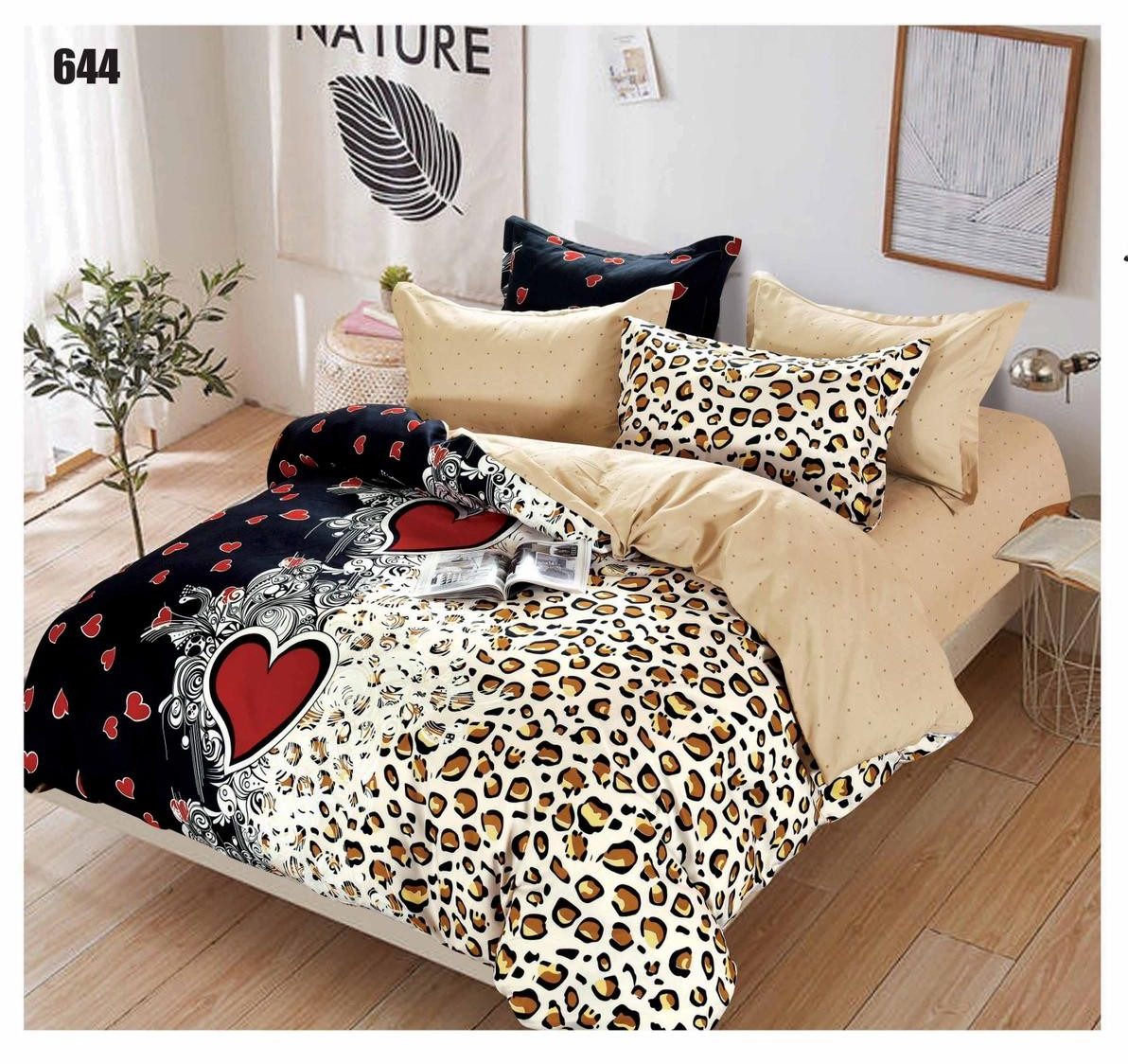 Home Finet bed linen Leopard heart double bed linen, Super Elegant Pucioasa