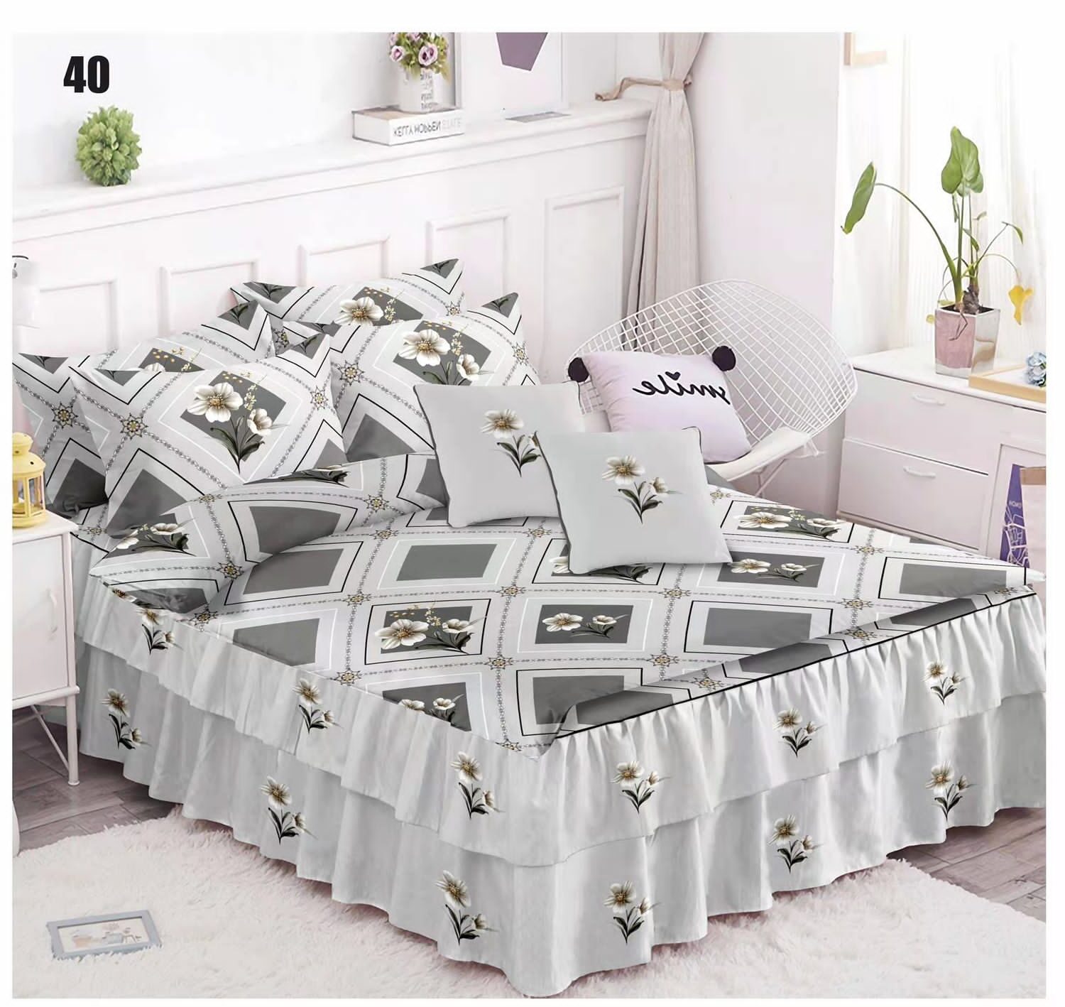 Home Bed Linen with Frills Lingerie with flounces, 6 pieces, gray flowers, 40, Super Elegant Pucioasa