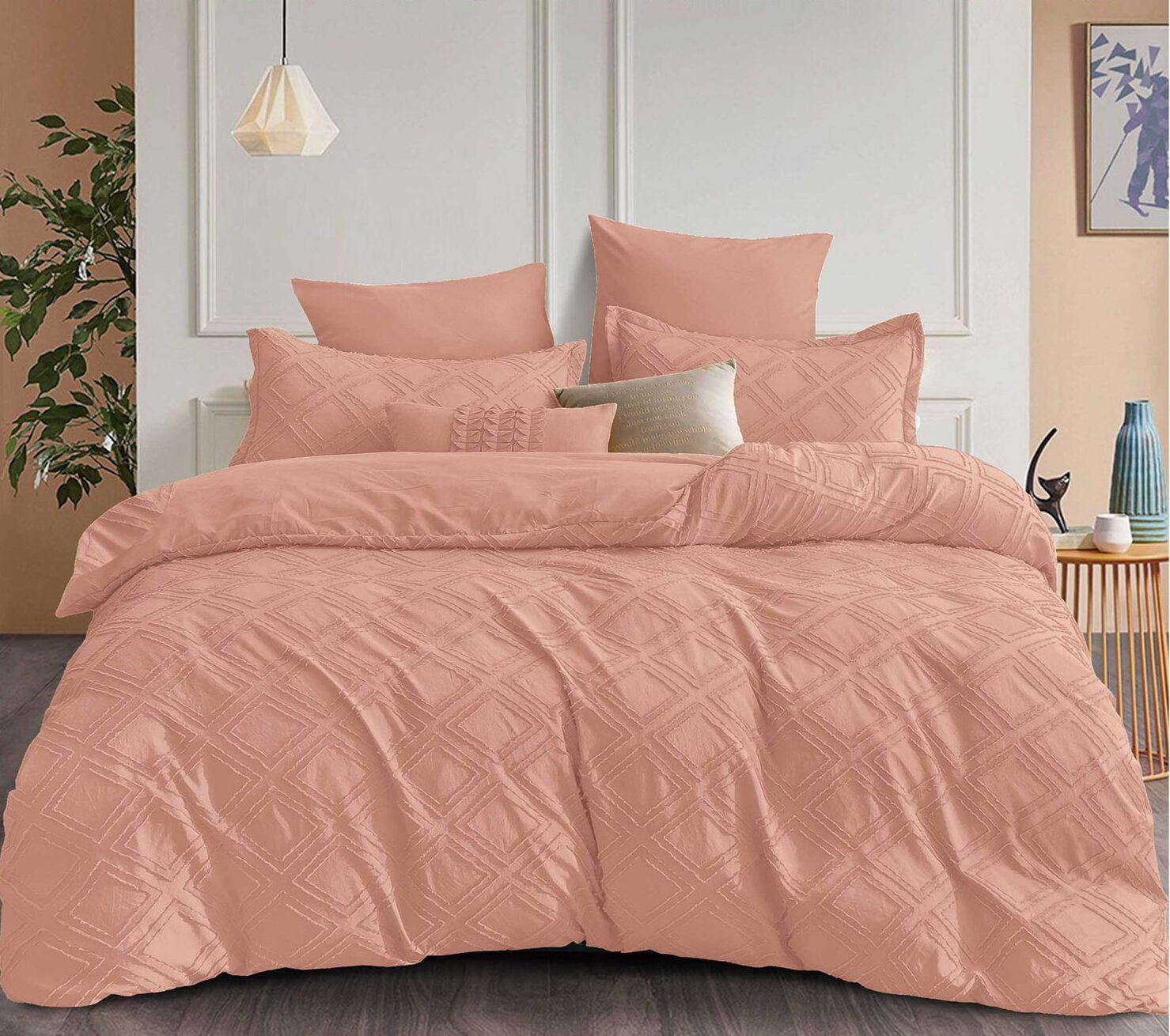 Quilted Cotton Quilt With 4 Pillowcases Set contains:– blanket 230x250cm- two pillowcases 60x80cm- two pillowcases 55x55cmAbout the material:Quilted cotton has a dense texture and is pleasant to the touch. It is a delicate material, but resistant and easy to maintain.It is perfect both for hot summer days and for colder days.Maintenance instructions:– wash at a maximum of 30°C automatically- no chemical bleaches are used- iron at maximum 130°C- it is recommended to wash before the first use for proper hygiene.- drying in the sun is not recommended.Packaging method:Clear plastic case with handles, perfect for gift giving.Product images are for presentation purposes and there may be slight differences in shade due to your phone or monitor settings.Dimensions may vary by +/-5%.