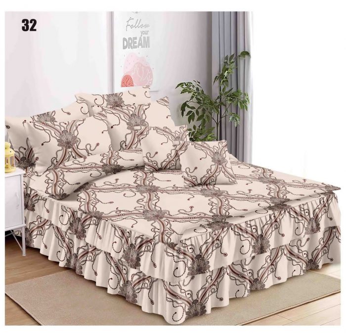 6-piece double bed set.The material from which the underwear is made is of superior quality with a thick fabric, fine texture, very pleasant to the touch and comfortable.The product does not discolor if the maintenance instructions are followed.The set comes packed in a plastic case.Material thickness: 140 gr/m2Material density: 145 TCMaterial composition: 100% fineSet weight: 3 kgThe set contains: